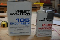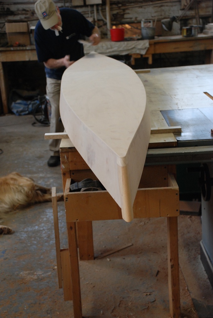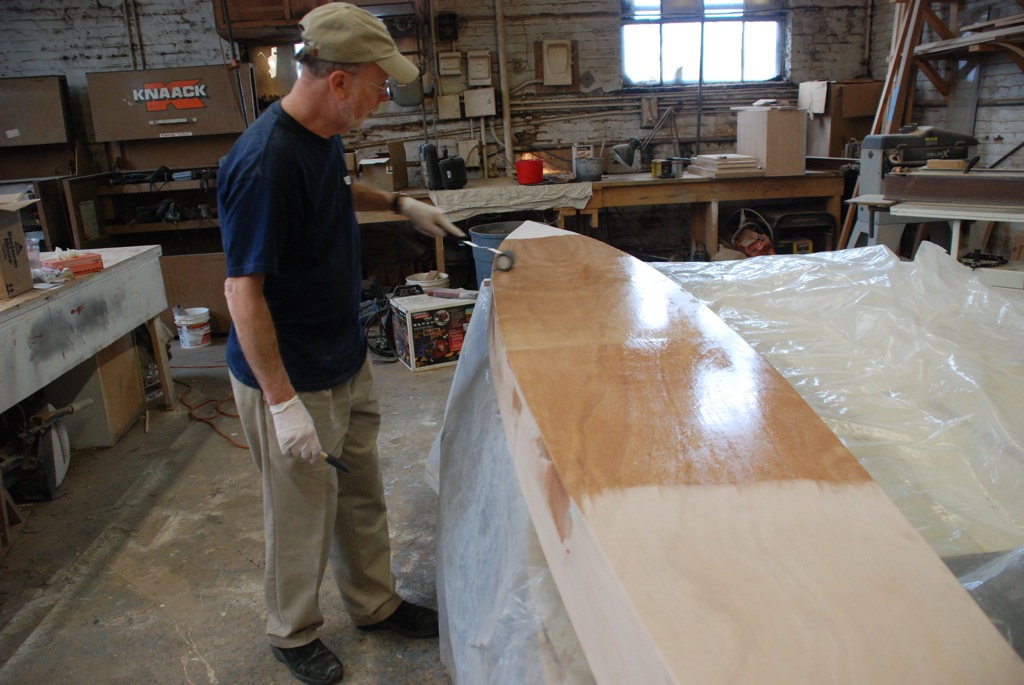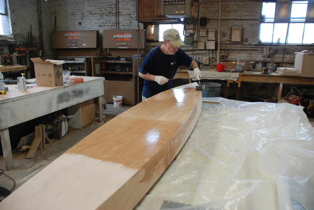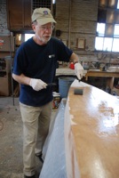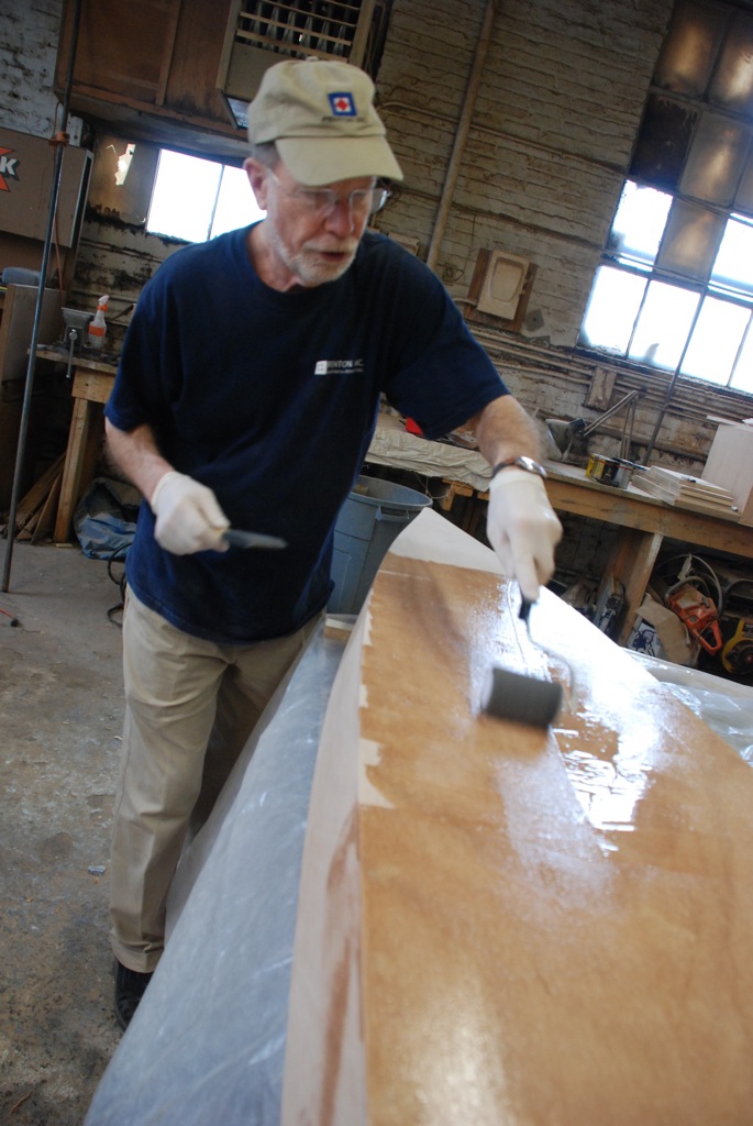 Epoxying the outside of the hull.